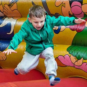 an beiden Tagen Hüpfburg, Knopfs Holzwerkstatt.